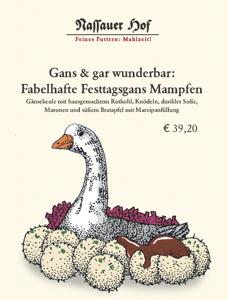 Gude und herzlich willkommen im Nassauer Hof! Hier gibt’s leckere Frankfurter Leibgerichte, herrlich hessische Hausmannskost, gutbürgerliche Küche, selbstgebrautes Bier, reichlich Stöffche und coole Drinks. Lasst es euch in unseren gemütlichen Gasträumen schmecken und habt eine gute, gesellige Zeit bei uns: Wir freuen uns sehr auf euren Besuch. Reservierungen telefonisch: 069 63 348 348
